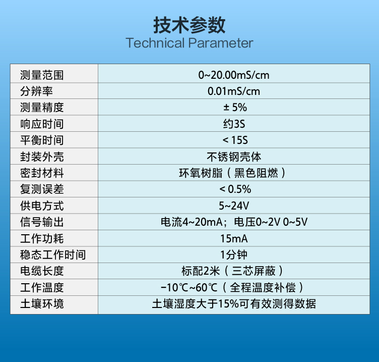 DC-TY2土壤鹽分傳感器是一款功能強大的監(jiān)測設備,它通過不銹鋼探針和精密溫度傳感器,將土壤中的鹽分轉換成模擬或數(shù)字信號輸出。該傳感器體積小巧、測量精度高、響應速度快,并具備優(yōu)良的密封性和耐腐蝕性,可直接埋入土壤中使用。廣泛應用在農(nóng)業(yè)、環(huán)境保護、科研等方面。