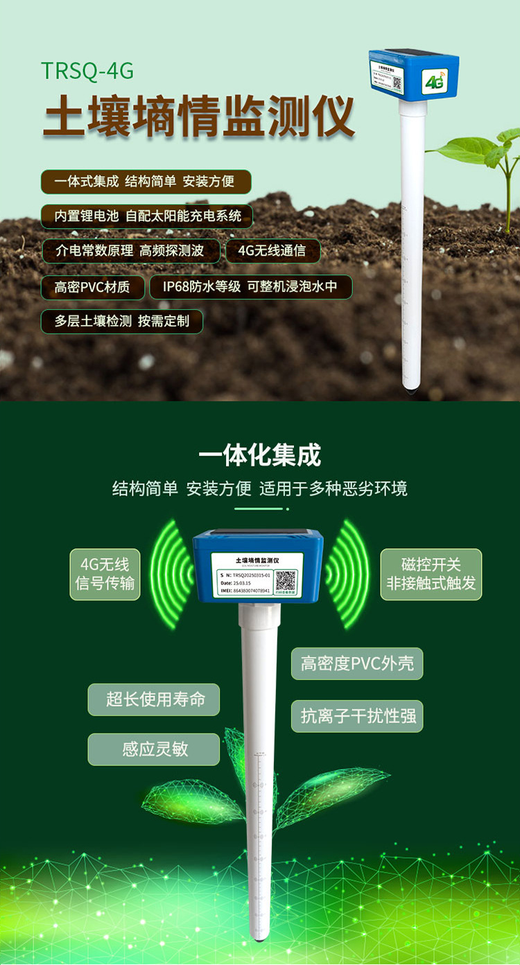我司自主研發(fā)的土壤墑情一體化設(shè)備是一種用于土壤生產(chǎn)環(huán)境實時在線檢測的設(shè)備,它集成了傳感器技術(shù)、數(shù)據(jù)采集與傳輸技術(shù),能夠?qū)崟r監(jiān)測土壤中的水分含量以及溫度參數(shù),為農(nóng)業(yè)生產(chǎn)提供關(guān)鍵數(shù)據(jù)支持。設(shè)備采用太陽能電池板+蓄電池的組合供電方式,確保長期穩(wěn)定運行的同時減少能源消耗。使用高精度傳感器,能夠準(zhǔn)確測量土壤中的水分含量和溫度,確保數(shù)據(jù)的可靠性。通過無線4G網(wǎng)絡(luò)或有線傳輸,將數(shù)據(jù)傳輸至云端或用戶終端,用戶可以通過手機(jī)或電腦遠(yuǎn)程隨時遠(yuǎn)程訪問和分析數(shù)據(jù)。