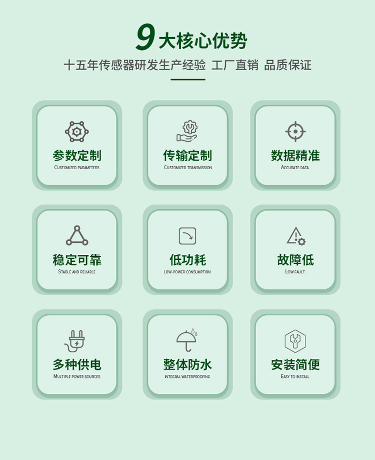 DC-TWS2土壤溫濕鹽傳感器是一款高精度、高穩(wěn)定性的監(jiān)測(cè)設(shè)備,能夠?qū)崟r(shí)測(cè)量土壤中的溫度和濕度,為農(nóng)業(yè)生產(chǎn)、園藝管理、環(huán)境科學(xué)等領(lǐng)域提供精準(zhǔn)數(shù)據(jù)支持。其應(yīng)用場(chǎng)景廣泛,如智能溫室、農(nóng)田灌溉系統(tǒng)、土壤修復(fù)項(xiàng)目中,它都發(fā)揮著至關(guān)重要的作用,幫助用戶實(shí)現(xiàn)精準(zhǔn)調(diào)控,優(yōu)化植物生長(zhǎng)環(huán)境,提高農(nóng)作物產(chǎn)量和質(zhì)量。
